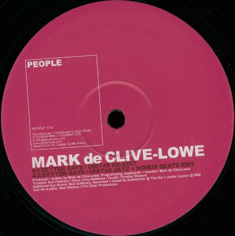 Mark de Clive Lowe – Better Days/Chocolate Sunday PEOPLE£4.99 Mark dCL from 2000. In stock Mark de Clive Lowe - Better Days/Chocolate Sunday quantity Add to basket SKU: PEOPLE017 Categories: Broken Beat / Nu Jazz, Weight not calculated Tag: Mark de Clive Lowe Listen Info Listen Better DaysChocolate Sunday Additional information Artist Mark De Clive Lowe, Mark De Clive-Lowe Catno PEOPLE017 Year 2000 Country UK Product Type Original Vinyl Format 12 INCH Media Condition VERY GOOD ++ Sleeve Condition VERY GOOD +