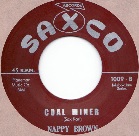 Originally issued in 1961 on Savoy Records and at the dwindling tail end of Nappy Brown’s initial R&B career, Coal Miner was a huge record which belonged, sound-wise at least, to his peak, some years prior. With its honking sax and sleazy Fever-esque bass line, the song probably arrived a little too late in the day to seriously trouble the charts at the time but nowadays it sounds perfect for the R&B set and is Nappy’s signature record on the Mod and Popcorn scenes, and beyond.A few years ago, a previously unheard take of Coal Miner was uncovered, a little longer and with slightly more off-kilter percussion and sax refrains – and dig that triangle! Still keeping the stomping, rasping, honking feel of the released version in place, but amplifying the quirkiness no end, this take was probably deemed a little too unconventional for release, but again it has fast become the version today. We are pleased to finally offer up this version on 45rpm vinyl for the first and what will also probably be the last time ever! Backed up with the original Savoy take, as released, which is still an incredible sound in its own right.The label has been named ‘Saxco’ in tribute to the late and very, very great bandleader, songwriter and arranger Sax Kari, whose long and largely unsung career enhanced that of many other artists. Sax passed away just over a year ago, with little to no tribute or fanfare in the mainstream media, and not even much noise made in R&B circles. We can only recommend further investigation into Sax’s long and winding career, and would say that any 45 bearing his credit is one worth listening to…