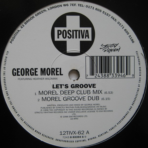 Sold out! George Morel Featuring Heather Wildman – Let’s Groove POSITIVA£10.00 Big vocal House music from autumn ’96… Sold out! SKU: 12TIVX-62 Categories: Boogie. Disco. Electro, Weight not calculated Tag: George Morel Listen Info Listen Let's Groove Additional information Artist George Morel Catno 12TIVX-62 Year 1996 Country UK Product Type Original Vinyl Format 12 INCH Media Condition VERY GOOD ++ Sleeve Condition Company Sleeve, VG+