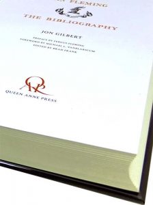 ILAB-Breslauer Prize Winner [2014]. FIRST EDITION, DELUXE ISSUE, limited to 250 numbered copies, SIGNED by the author in blue ink to limitation page at rear. Royal quarto (33 x 24cm), pp.x; 692 [2]. With black and white illustrations throughout plus four suites of eight colour plates. Set in Albertina type and printed in two colours. Handsomely bound in quarter vellum over black boards with gilt ornament, scarlet endpapers and top edge gilt, clear plastic jacket – inspired by Fleming’s own design for a limited edition of ‘On Her Majesty’s Secret Service’ (Cape, 1963). Housed in a black cloth slip-case, lined in red suede, gilt-stamped with the arms of the Fleming family. Fine / as new, with the original New Book Information sheet [press release] loosely inserted. A comprehensive guide to the work of Ian Fleming by Jon Gilbert, an expert on the literary James Bond, covering everything from the first draft of “Casino Royale” in 1952 to editions still in print today. Published by Queen Anne Press, the imprint once managed by Ian Fleming, the book includes a preface from his nephew Fergus