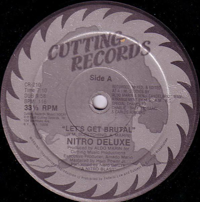 Nitro Deluxe – Let’s Get Brutal CUTTING RECORDS£10.00 Started out life as a masive underground Electro-Disco track and ended up 3 years later as the anthem for a generation of pill popping ravers! In stock Nitro Deluxe - Let's Get Brutal quantity Add to basket SKU: CR-210 Categories: House. Techno, Weight not calculated Tag: Nitro Deluxe Listen Info Listen Let's Get Brutal Additional information Artist Nitro Deluxe Catno CR-210 Year 1986 Country US Product Type Original Vinyl Format 12 INCH Media Condition VERY GOOD+ Sleeve Condition VERY GOOD +