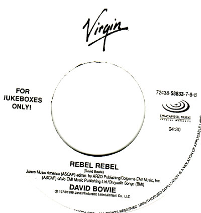 Sold out! David Bowie – Rebel Rebel/ Changes VIRGIN£10.99 Sold out! SKU: 72438-58833- Categories: Rarities 7s, Weight not calculated Tag: David Bowie Listen Info Listen ChangesRebel Rebel Additional information Artist David Bowie Catno 72438-58833- Year 1971/ 1999 Country US Product Type New Vinyl / Reissues Format 7 INCH Sleeve Condition NEW